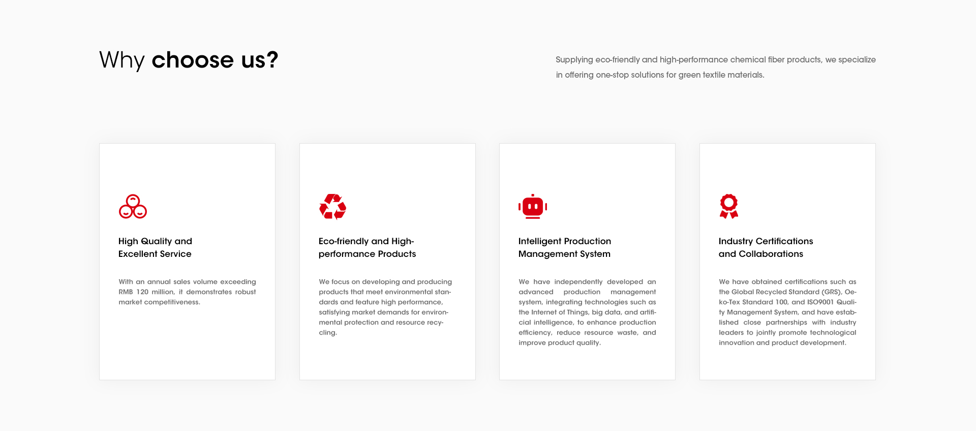 We specialize in the development and production of chemical fiber products that meet both environmental standards and high-performance characteristics.